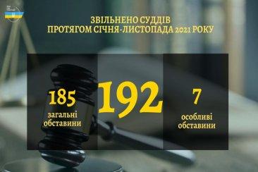 Протягом 2021 року Вища рада правосуддя ухвалила рішення щодо звільнення 194 суддів з посад за загальними обставинами: 190 – у зв’язку з поданням заяв про відставку, 4 – у зв’язку з поданням заяв про звільнення за власним бажанням.