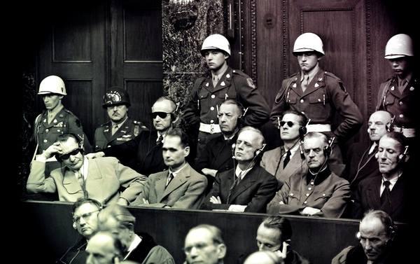 В Нюрнберге многое происходит впервые. Сам формат международного трибунала — двое судей плюс прокурорская группа от каждой страны-победительницы. Лидеры государства на скамье подсудимых. Практика синхронного перевода. Термин «геноцид», предложенный в 1944-м польским профессором Рафаэлем Лемкиным. Термин «преступления против мира», введенный советским правоведом Ароном Трайниным,— имеющий в виду заранее спланированную захватническую войну. Наконец, это первый в истории судебный процесс, где главным свидетелем обвинения — во многом переломившим ход самого разбирательства — оказалось кино.