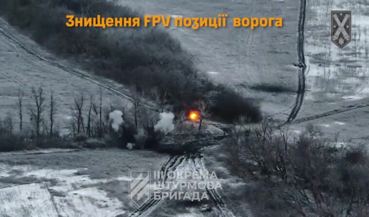 Російська БМП-3, підбита FPV під час просування з Воздвиженки в бік Highwawy T0504, 14 або 15 січня.
