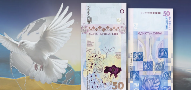 Нацбанк продає пам’ятну банкноту номіналом 50 грн. Вона називається “Єдність рятує світ”, і коштує 245 грн. Особливістю ж купюри є дизайн – виконаний вертикально.