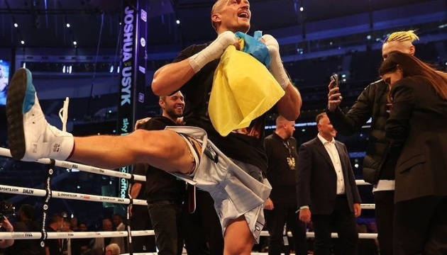 Олександр Усик із прапором України в руках станцював гопак. Це сталося вночі 26 вересня у Лондоні, де український боксер переміг британського – Ентоні Джошуа – у бою за одразу 4 чемпіонські пояси. Яка б політична плутанина не виникала через одягові смаки Усика, сам він себе на рингу ідентифікує українським спортсменом. Ми за те, щоб не «виштовхувати» його під крило різних соловйових та інших кремлівських пропагандистів. Тим більше стало відомо, що Сашко боксував в перчатках, на одній був надпис Україна, на іншій Симферопіль англійською мовою. Вітаємо. Редакція ЮВУ.