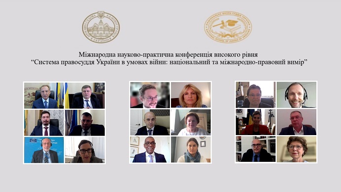 У Києві пройшла Міжнародна науково-практична конференція високого рівня «Система правосуддя України в умовах війни: національний та міжнародно-правовий виміри», організована спільно НШСУ та ДСАУ за підтримки проектів/програм міжнародної технічної допомоги» з метою обговорення ключових питань правосуддя в умовах воєнного стану.