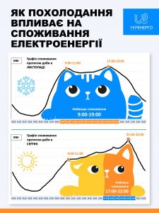 Споживання електроенергії нерівномірне. Протягом доби воно має піки – зранку, коли всі збираються на роботу, і ввечері, коли повертаються додому. Але влітку графік споживання був схожим на одновухого котика (дивіться інфографіку), бо пік споживання зранку був незначним, а ввечері – відчутно зростав.